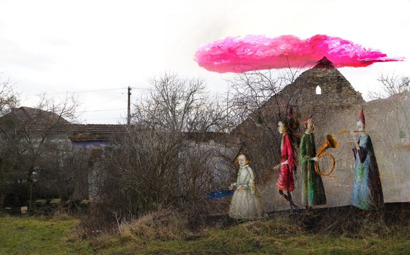 Ce ar fi dacă peste toate s-ar aşeza un nor roz şi de fapt locul ar găzdui un teatru-grădină de vară, instrumente muzicale, artişti, copii, tineri şi bătrâni din sat, să fie un loc de întâlnire? Un loc în care să visezi sub cerul liber, un loc deschis artelor…oamenilor şi emoţiilor lor?